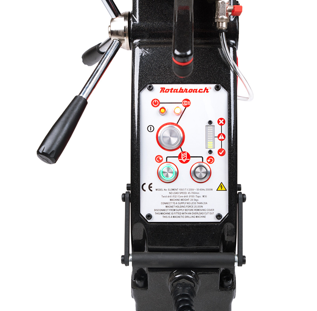 Rotabroach - авторитетный производитель из Англии, создающий ультрасовременные электрические магнитно-сверлильные станки, и ELEMENT 100 с поворотным основанием не является исключением. Этот станок представляет собой мощный инструмент, предназначенный для сверления в жестких материалах, таких как сталь, чугун и алюминий.